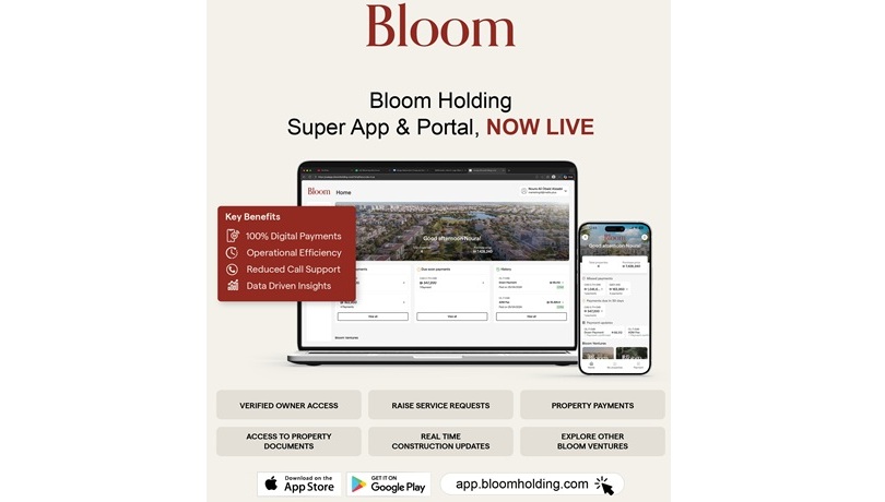 وقالت الشركة أنها أطلقت كلاً من تطبيق بلووم بارتنرز Bloom Partners وبلووم كوميونيتي Bloom Community وبلووم سوبر Bloom Holding Super App، والتي تم تصميمها لتوفير تجارب رقمية مترابطة وسلسة وفعّالة تغطي مختلف مراحل التملك العقاري والحياة في مجتمعات بلووم السكنية.